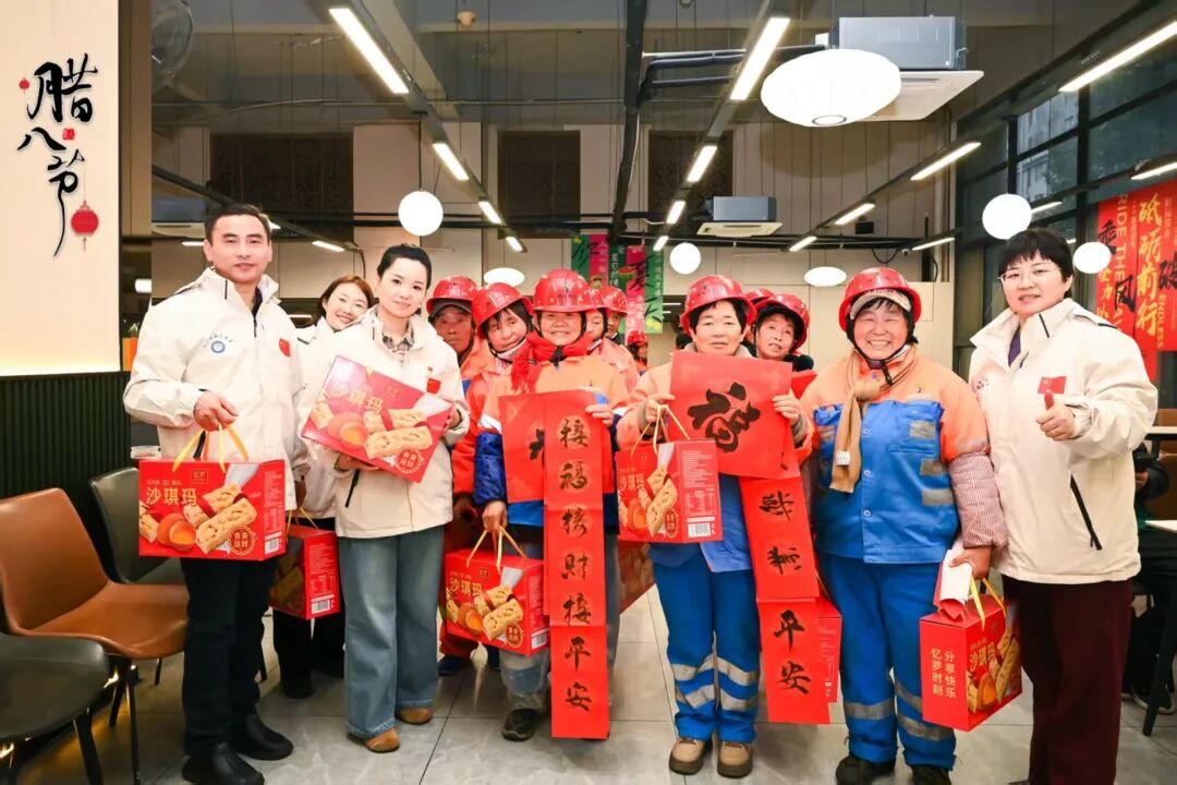 弘扬传统文化、传递社会温情,是安徽省爱心联盟慈善基金会与安徽新华女性公益发展中心共同的公益追求。在安徽民政厅的悉心指导下,2026年1月26日(农历腊月初八),由两家单位联合发起,安徽省地平行业协会党支部、合肥大姐志愿服务联盟、合肥市政协助农委员工作室、蜀山经济技术开发区卓然社区居民委员会、瑶海区会协商委员工作室共同协办的“腊八送暖 福联迎春”致敬城市守护者主题公益活动,在蜀山经济开发区电商园三期2号楼一楼大厅暖心启幕。两大发起方以腊八为媒、以爱心为桥,向环卫工人、快递小哥等一线劳动者送上真挚关怀,让城市守护者在凛冬时节感受双倍温暖与敬意。